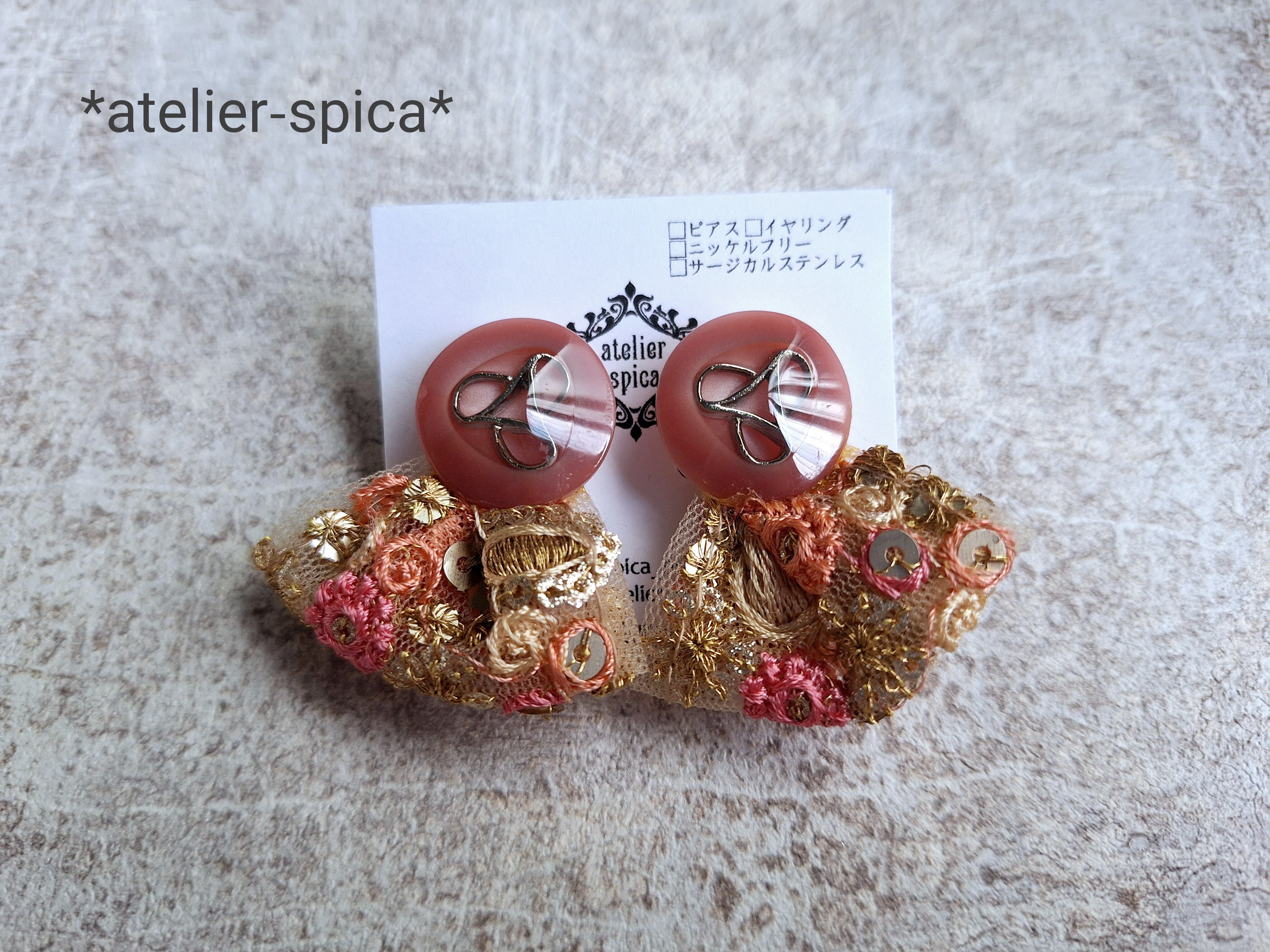 刺繍リボンはボタンの裏に固定接着しております☺️(写真4、5枚目)