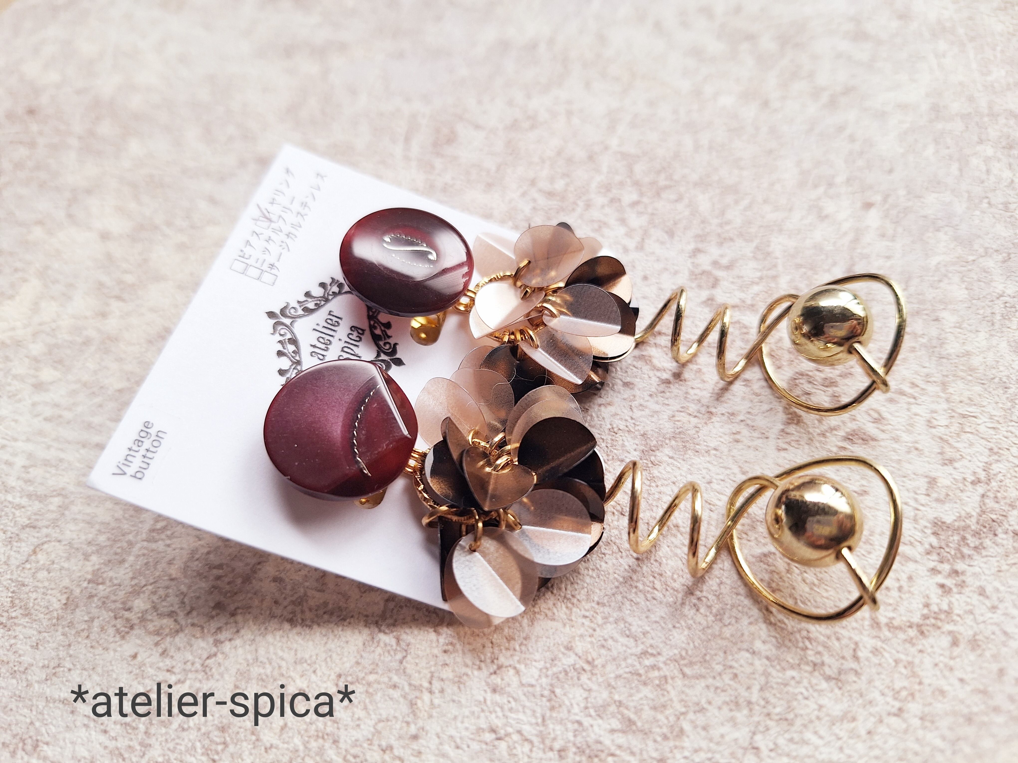 ヴィンテージボタンの耳飾りです✨