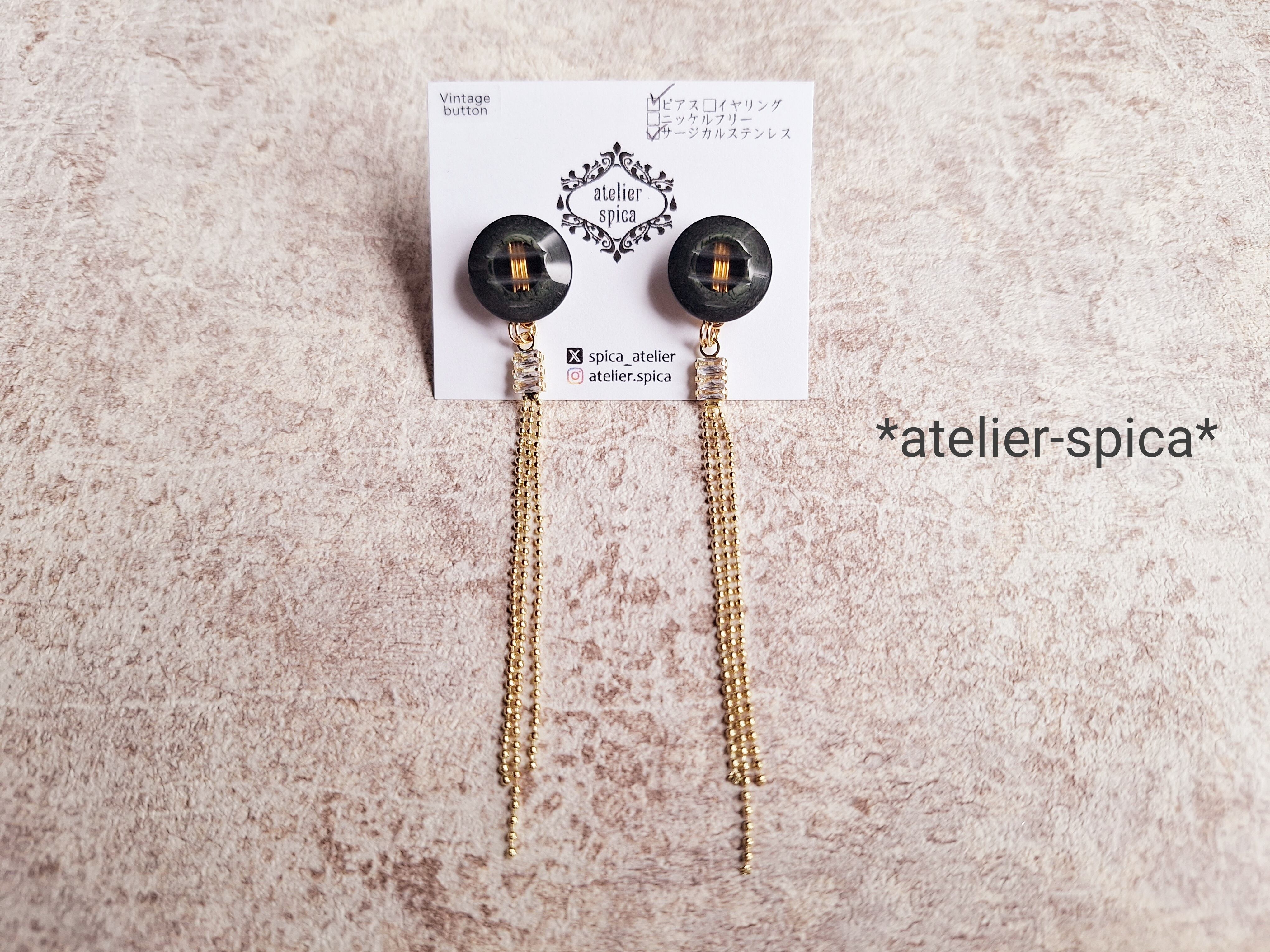 ヴィンテージボタンの耳飾りです✨